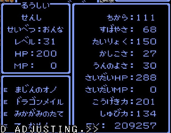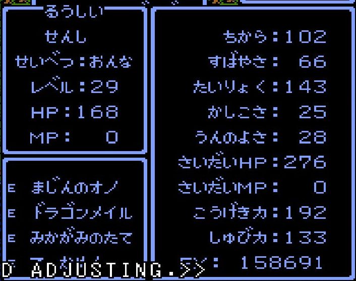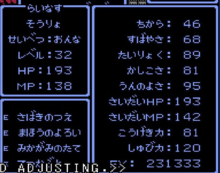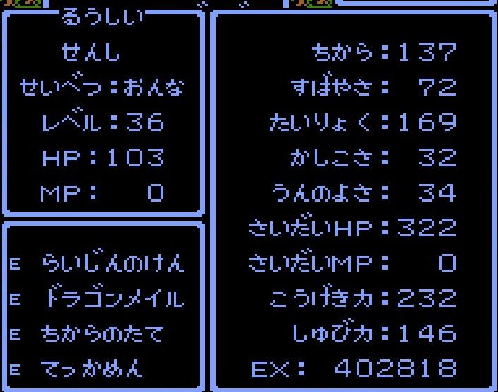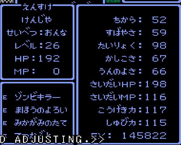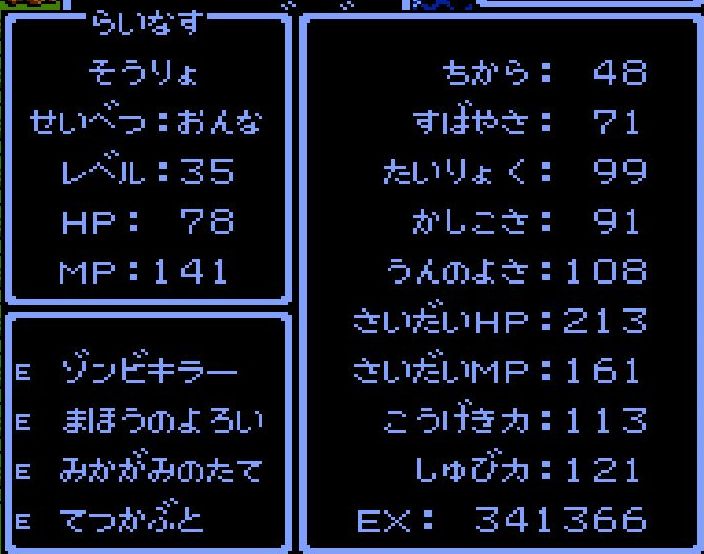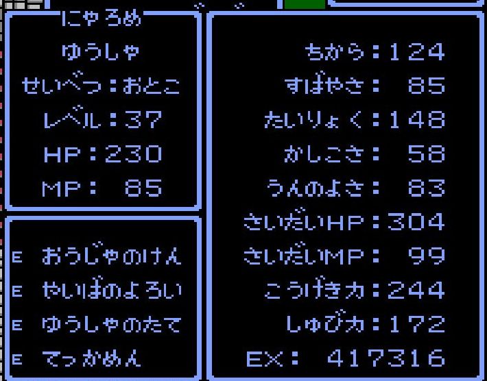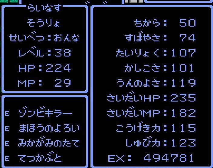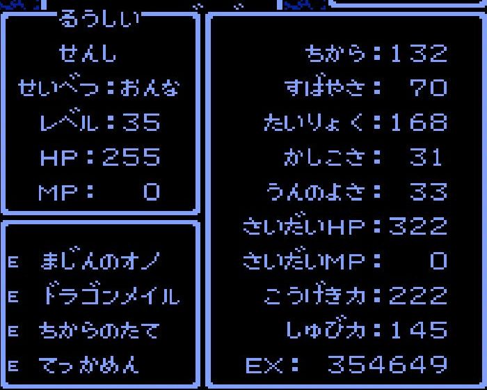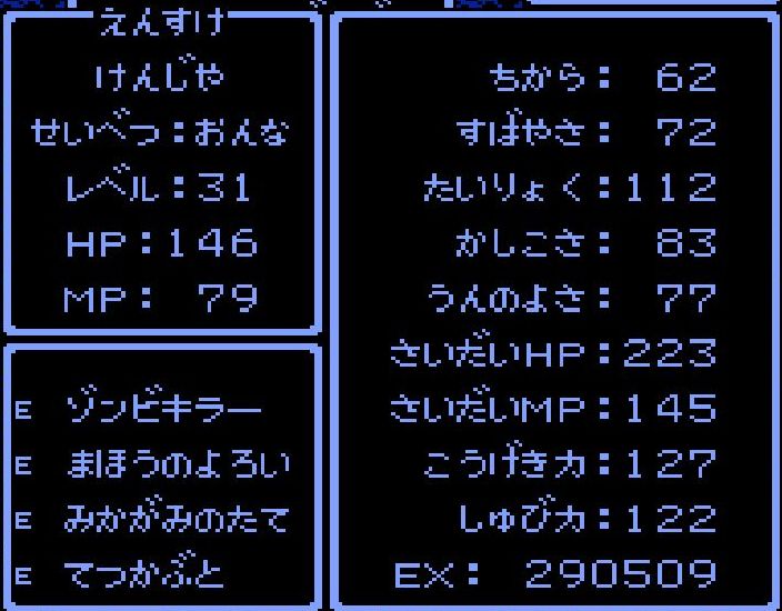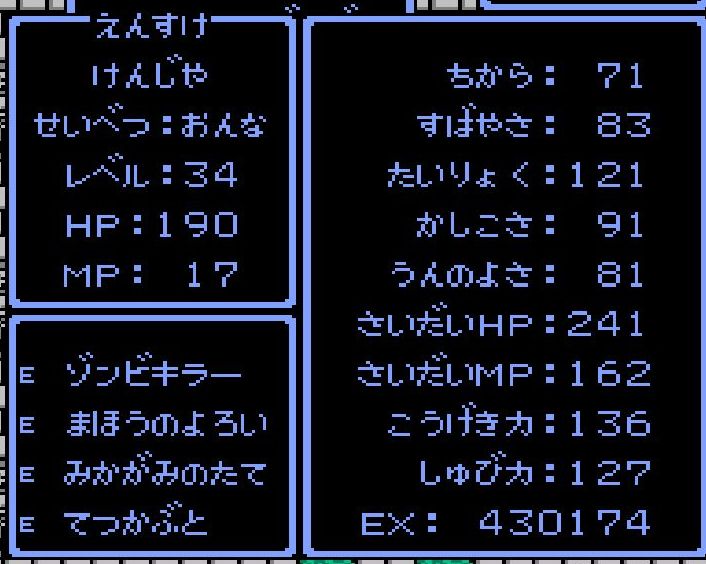 賢者・えんすけがレベル34にアップ。呪文「ドラゴラム」「ベホマラー」を覚える。