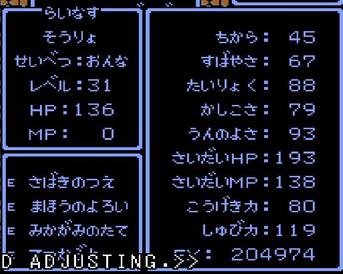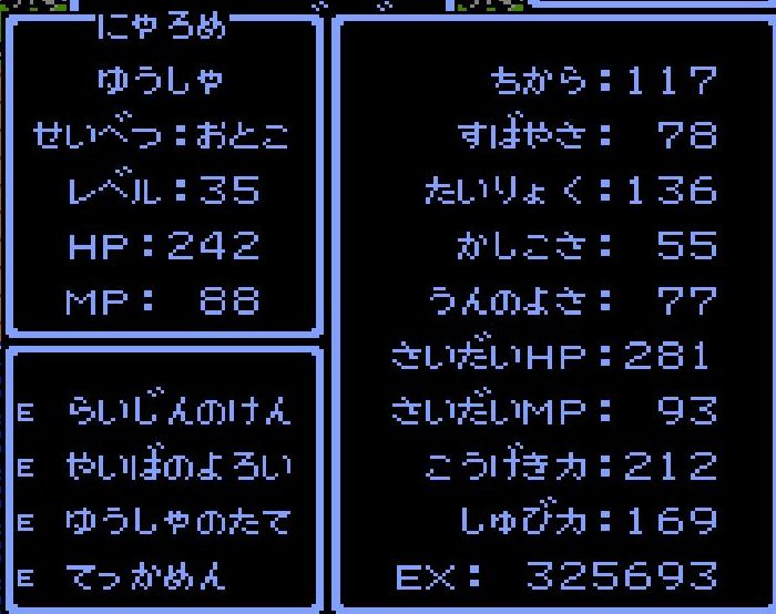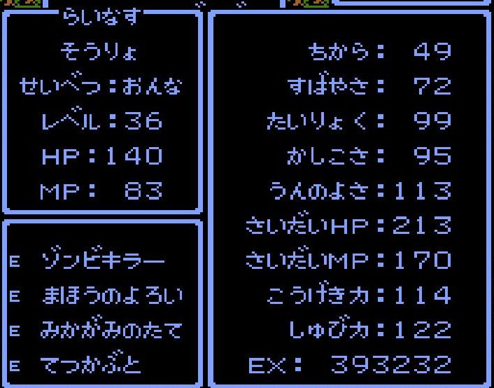 賢者・えんすけがレベル34にアップ。呪文「ドラゴラム」「ベホマラー」を覚える。