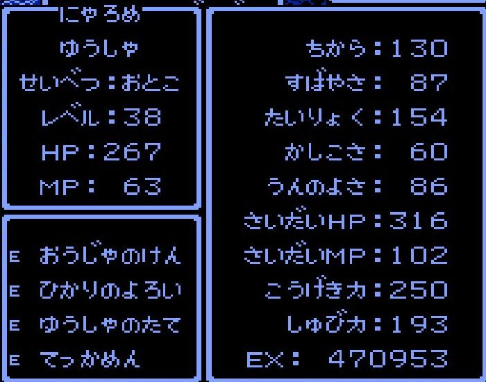 勇者・にゃろめがレベル38にアップ。
